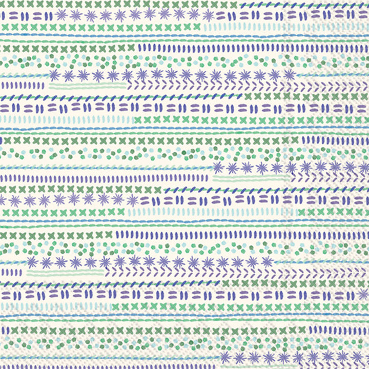 Playful, hand-drawn stripes in cool blues with hints of green give this paper lunch napkin a crisp, modern pattern that instantly brightens the table. Soft yet sturdy for everyday meals and casual gatherings, Sampler Stripes pairs effortlessly with solid dinnerware for a polished, mix-and-match look. Approximate dimensions are 6.5 x 6.5 x 1 inches. German printed on soft, 3-ply paper.