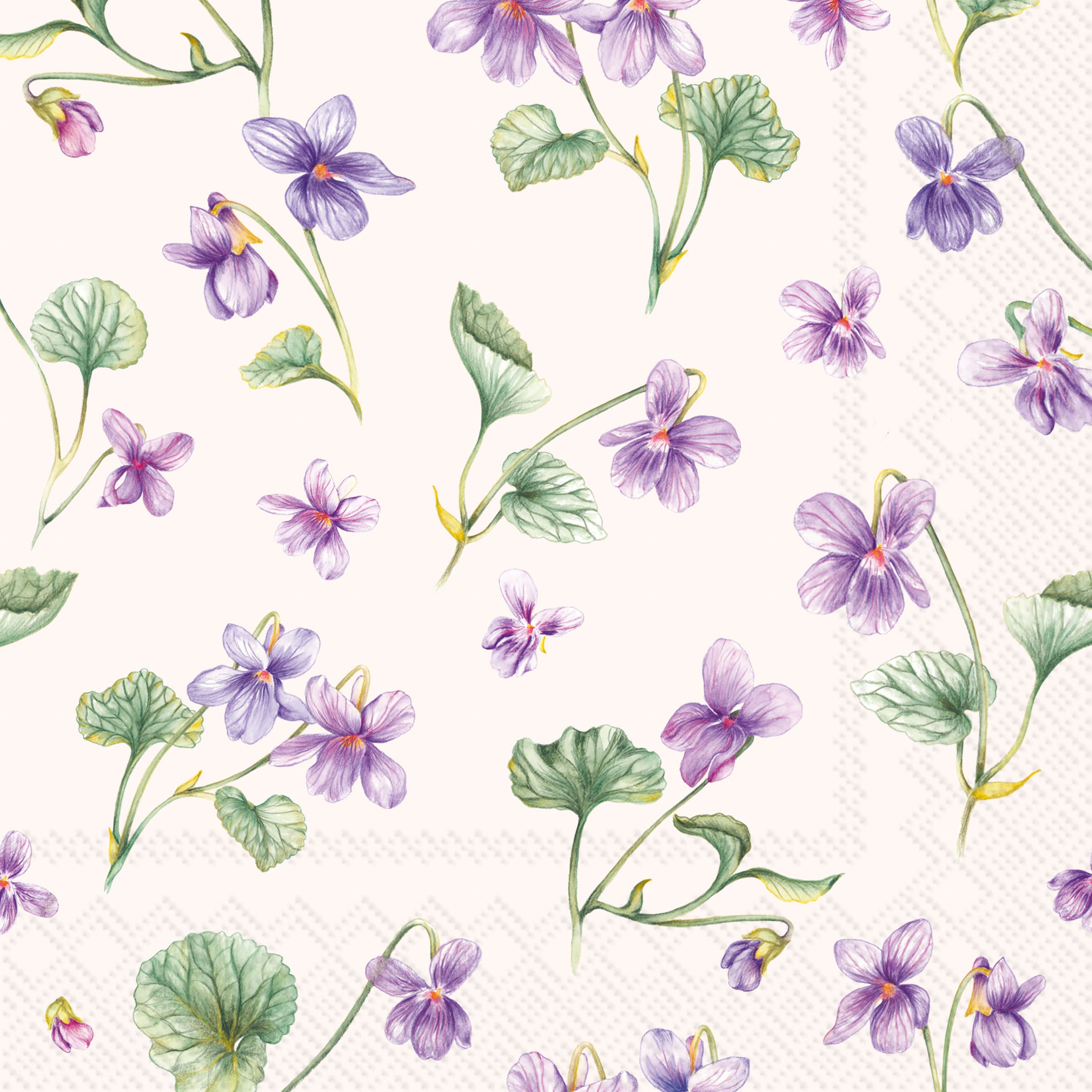 Delicate violet blossoms and leafy tendrils bloom across a cream backdrop, adding an artful floral accent to lunch spreads and everyday dining. Crafted from quality paper, these lunch napkins deliver easy cleanup with elegant style, perfect for buffets, place settings, and casual entertaining. Approximate dimensions are 6.5 x 6.5 x 1 inches. German printed on soft, 3-ply paper.