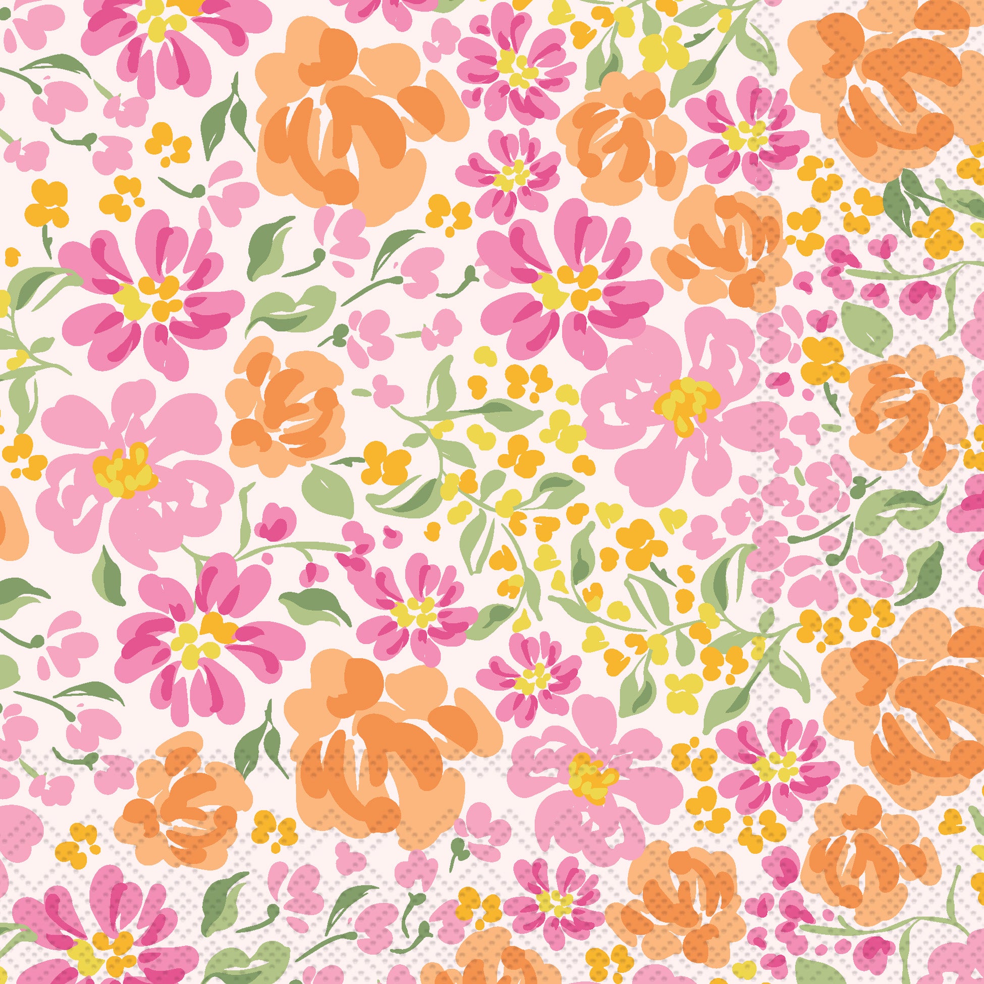 Set a charming table with the Secret Garden Lunch Napkin in pink, a paper design splashed with painterly florals in pink, peach, and yellow with fresh green leaves. Soft yet absorbent, these lunch napkins add an effortless bloom of color to everyday meals, picnics, and casual gatherings. German printed on soft, 3-ply paper. Approximate dimensions are 6.5 x 6.5 x 1 inches.