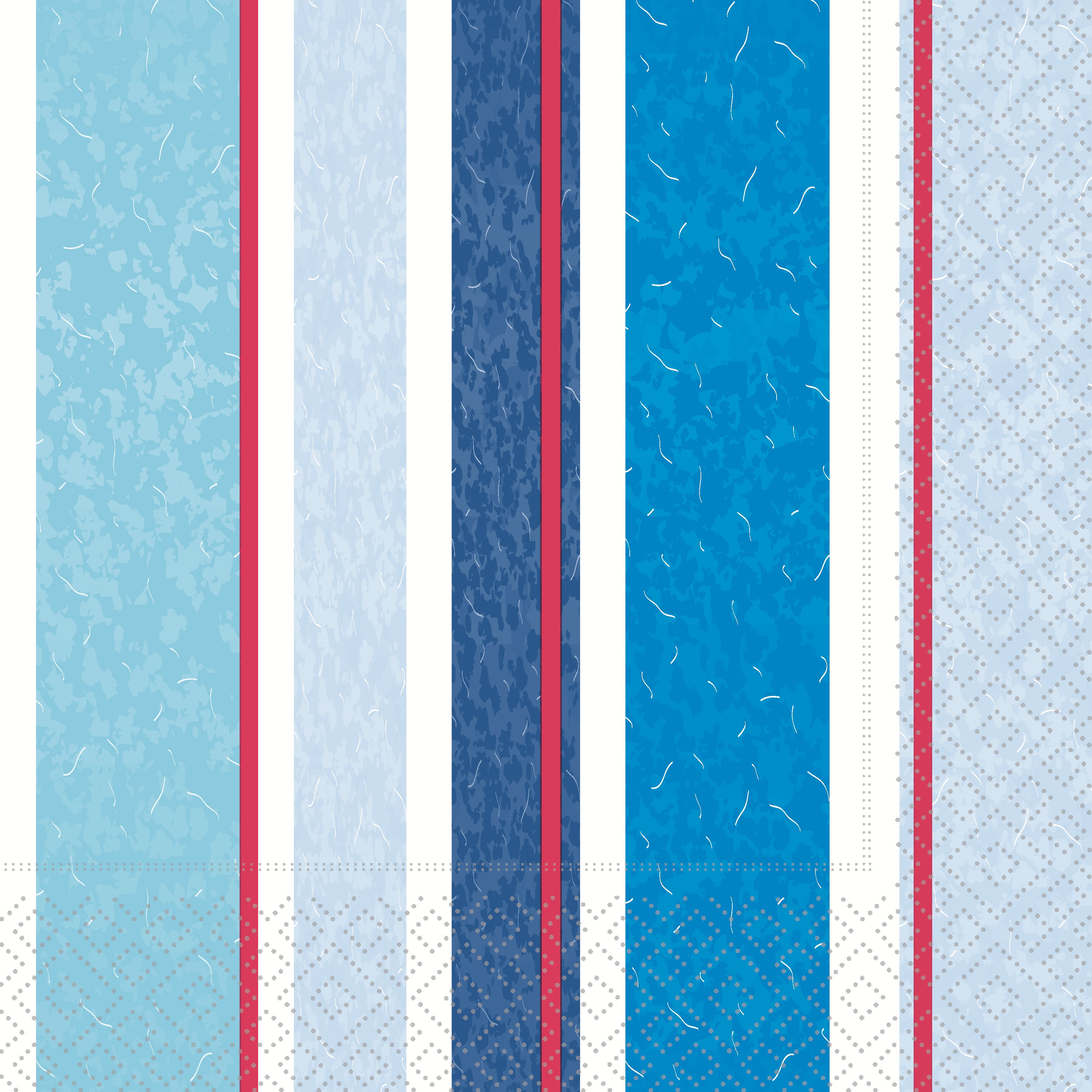 Cool bands of aqua and navy, edged with a crisp coral accent, give the Marina Stripes Lunch Napkin a refined, nautical look that instantly lifts the table. Made of dependable paper, these lunch napkins balance easy cleanup with a clean-lined pattern that complements coastal, modern, and classic settings alike. Approximate dimensions are 6.5 x 6.5 x 1 inches. German printed on soft, 3-ply paper.