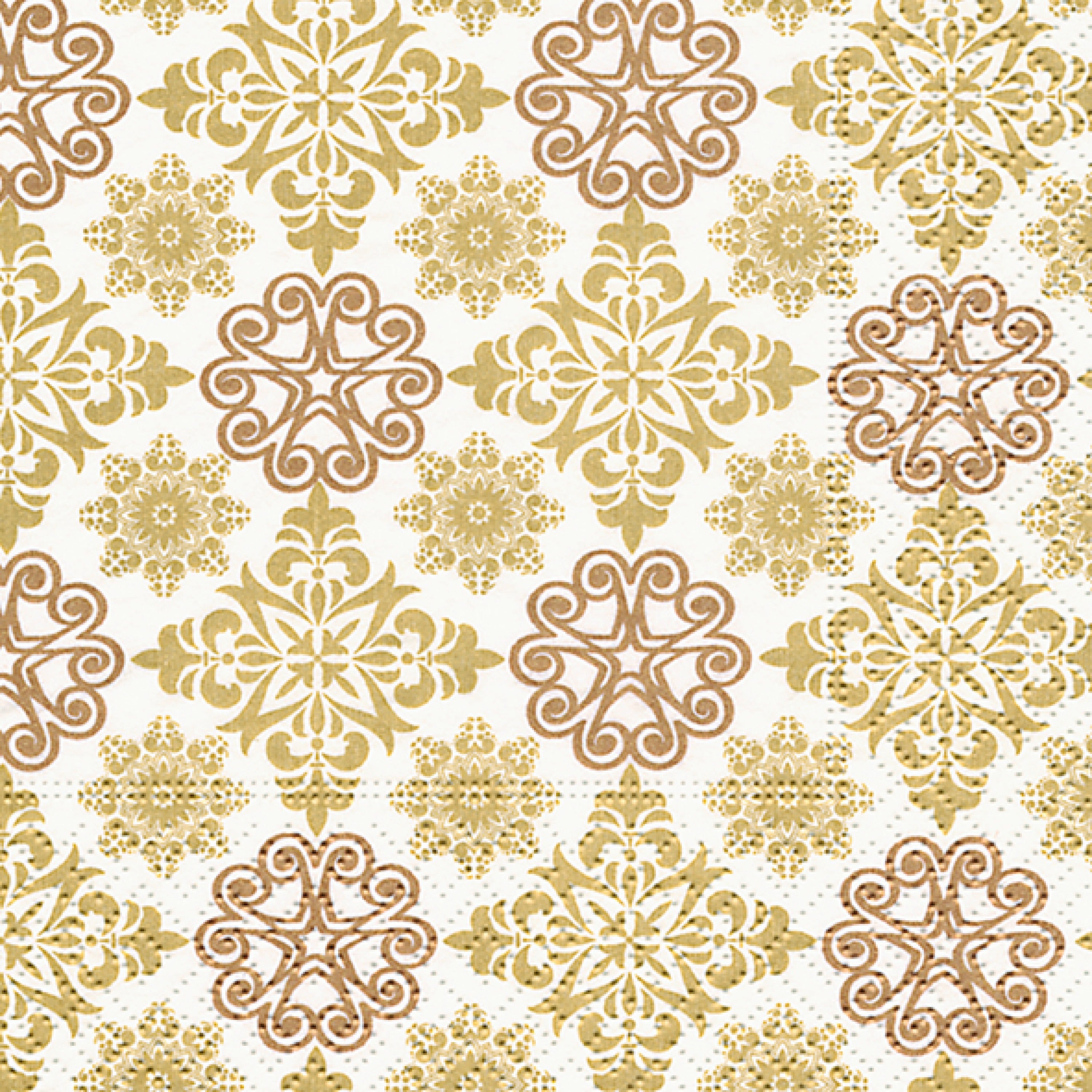 Adorn your table with gold-toned, snowflake-inspired patterns that lend instant polish to any lunch setting. Crafted from quality paper, these napkins balance soft absorbency with a refined look for everyday dining and effortless entertaining. Approximate dimensions are 6.5 x 6.5 x 1 inches. German printed on soft, 3-ply paper.