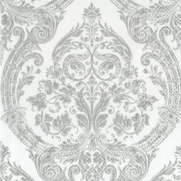 Elevate your place setting with the Grandeur Lunch Napkin, where an intricate white-and-silver damask pattern lends a stately, polished look. Crafted from soft, absorbent paper, these lunch napkins balance everyday practicality with elegant presentation. Approximate dimensions are 6.5 x 1 x 6.5 inches. German printed on soft, 3-ply paper.