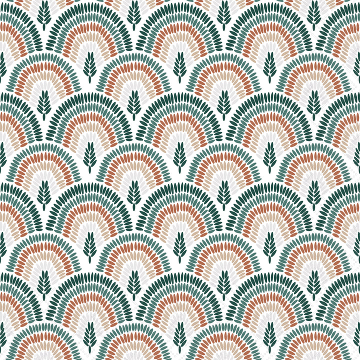 Arched rainbows formed by leaf-like brushstrokes in deep green and warm clay give the Rainbow Forest Lunch Napkin a modern, nature-inspired rhythm that elevates every place setting. Printed on quality paper, these lunch napkins bring mix-and-match charm and practical ease to everyday meals and casual gatherings. Approximate dimensions are 6.5 x 6.5 x 1 inches. German printed on soft, 3-ply paper.