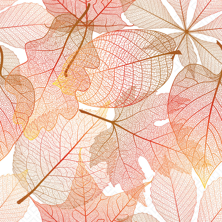 The Transparent Leaves lunch napkin showcases delicately layered leaf silhouettes and intricate veinwork, lending an airy, nature-inspired elegance to your table. Crafted from paper for everyday use, it brings effortless polish to casual meals and easy entertaining. Approximate dimensions are 6.5 x 6.5 x 1 inches. German printed on soft, 3-ply paper.