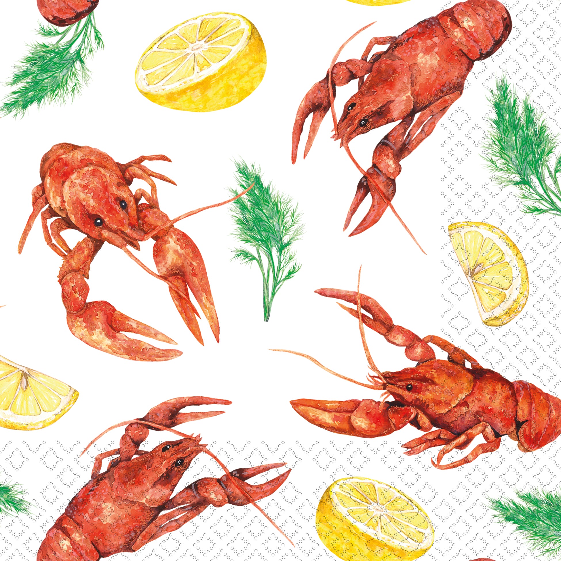 Serve coastal charm with the Crawfish Delight Lunch Napkin, where lively watercolor crawdads mingle with lemon wedges and sprigs of green on crisp white paper. Soft yet sturdy for everyday meals and seafood gatherings, this paper lunch napkin brings playful, easy-clean style to patios, picnics, and casual feasts. German printed on soft, 3-ply paper.
