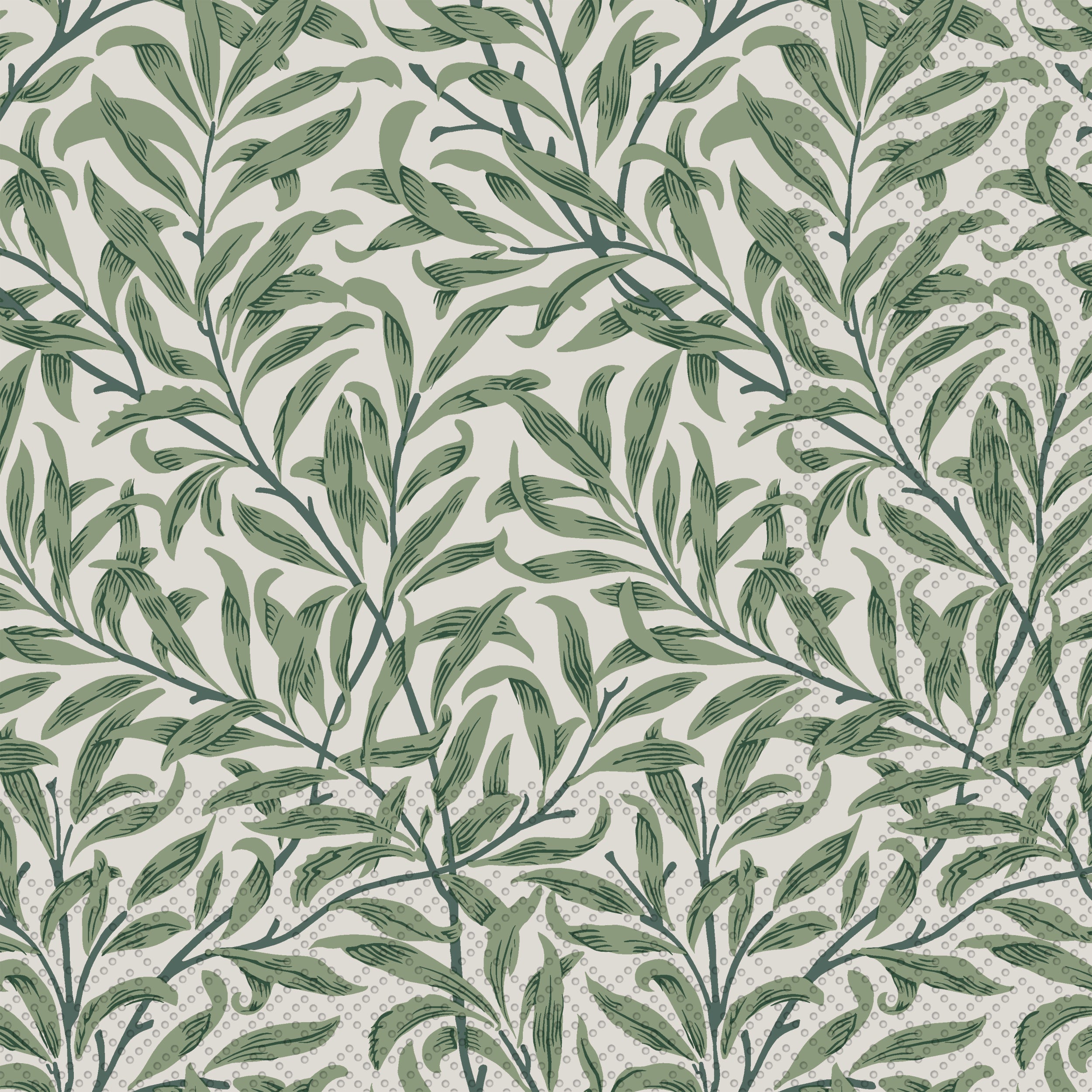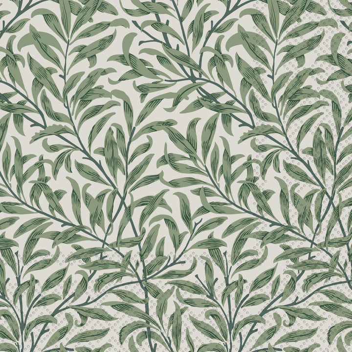 The Willow Vines Lunch Napkin lays a fresh canopy of layered green leaves across soft, absorbent paper, bringing an easy natural elegance to everyday meals. Sturdy enough for lunch service yet refined for entertaining, this leafy motif pairs effortlessly with neutral place settings and garden-inspired tabletops. German printed on soft, 3-ply paper. Approximate dimensions are 6.5 x 6.5 x 1 inches.
