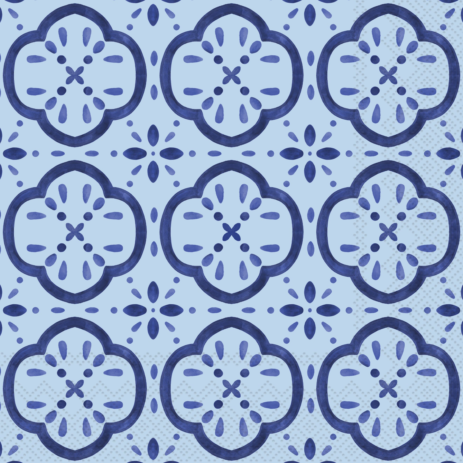 Bring a touch of Mediterranean charm to the table with the Amalfi Cucina blue lunch napkin, patterned in vintage tile–inspired motifs in layered shades of blue. Printed on quality paper, these everyday napkins elevate casual meals and easy entertaining with artful style and dependable practicality. German printed on soft, 3-ply paper. Approximate dimensions are 6.5 x 6.5 x 1 inches.