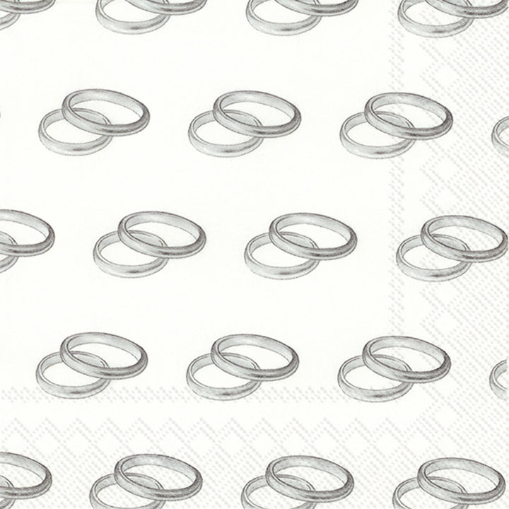 Set a refined tone with Rings Lunch Napkin Silver, featuring an allover pattern of interlocking silver bands and a subtly embossed edge ideal for weddings, celebrations, and anniversaries. Made from soft, absorbent paper, these lunch-size napkins elevate place settings while making quick work of toasts, cake, and cleanup. Approximate dimensions are 6.5 x 1 x 6.5 inches. German printed on soft, 3-ply paper.