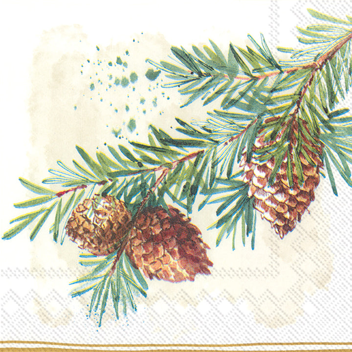 Bring a touch of woodland elegance to the table with our Decorative Branches Lunch Napkin, featuring painterly greenery and lifelike pinecones. Printed on quality paper in a convenient lunch size, it adds natural texture and easy cleanup to everyday meals and casual gatherings. Approximate dimensions are 6.5 x 1 x 6.5 inches. German printed on soft, 3-ply paper.