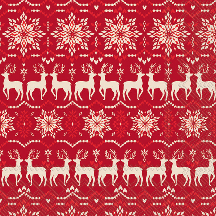 Bring playful polish to the table with the Soren Lunch Napkin Red, where crisp white deer parade across a rich red ground in bold, folk-inspired patterns. Crafted from soft, absorbent paper, these lunch napkins add an artful pop to everyday meals, picnics, and casual gatherings. Approximate dimensions are 6.5 x 1 x 6.5 inches. German printed on soft, 3-ply paper.