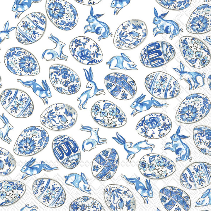 Artfully illustrated in a porcelain-inspired blue-and-white palette, the Blue And White Eggs Lunch Napkin scatters whimsical rabbits and beautifully patterned eggs across a crisp backdrop. Printed on quality paper, these lunch napkins bring charming detail to everyday meals and make cleanup effortless. Approximate dimensions are 6.5 x 1 x 6.5 inches. German printed on soft, 3-ply paper.