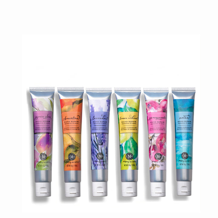 This tester kit includes tester stickers and one tube of each of the following fragrances: Clementine (MAN2513), Jasmine Plum (MAN2701), Lavender (MAN2511), Lemon Verbena (MAN2510), Ocean (MAN2512), and Pomegranate (MAN2514).