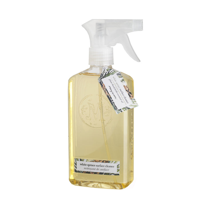 Bring the outdoors inside with this wonderful blend of herbaceous pine and spruce, combined with notes of rosemary, carnation, cedar, and hints of spice. Using White Spruce Surface Cleaner will fragrance and refresh your surroundings for hours. Naturally plant-based with coconut extract, this hard-working concentrated cleanser is safe and effective on non-porous surfaces in your kitchen and bath. Approximate dimensions are 3.25 x 1.5 x 8.5 inches.