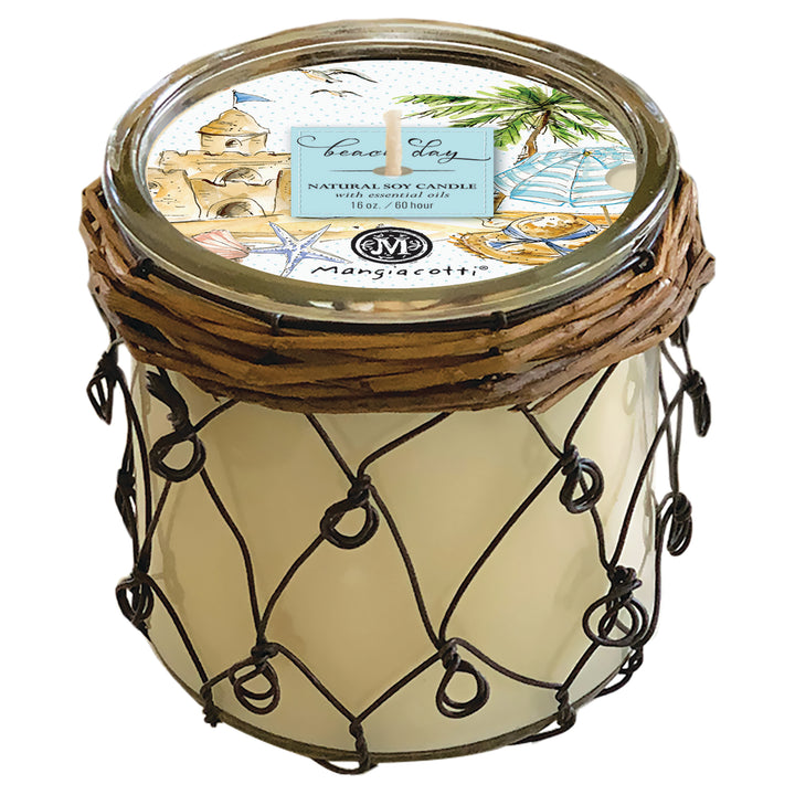 Evoke a sun-kissed, breezy beach atmosphere in your home with this fresh scent of coconut, citrus, and sea salt. This earth and mood friendly hand-poured candle sits in a recycled, reusable glass container wrapped in wicker and wire. Provides a clean burn time of Approximately 60 hours.