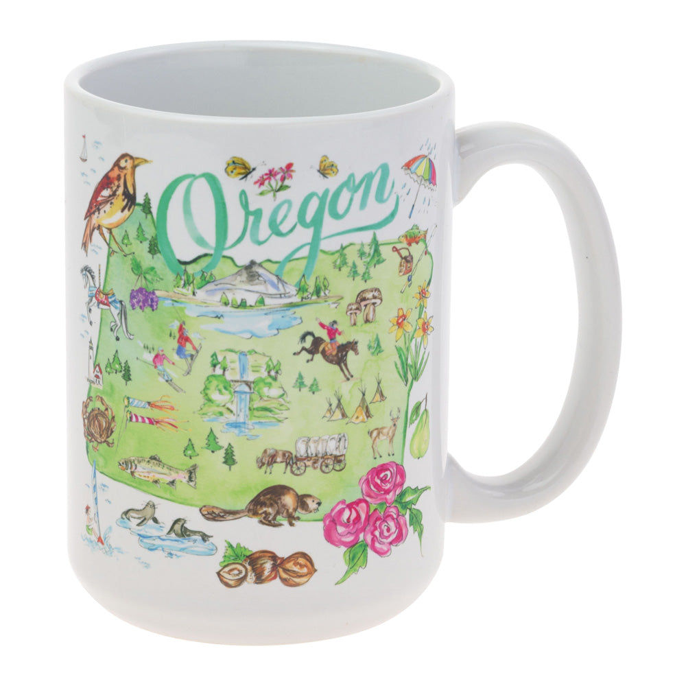Celebrate the Beaver State with this ceramic Oregon State Mug, featuring a charming illustrated map alive with waterfalls, pines, roses, and iconic wildlife. Crafted from smooth, durable ceramic with a comfortable handle, it’s a cheerful everyday companion for coffee or tea as you daydream about mountain trails and coastal drives. Approximate dimensions are 5 x 3.25 x 4.75 inches.