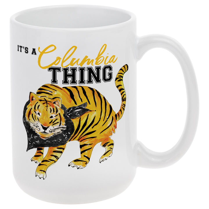 Unleash mascot pride with the Black Prowling Tiger Mug, crafted from durable ceramic and finished with a bold, black-accented tiger in motion. This striking piece of drinkware elevates coffee time and team spirit alike, bringing prowl-and-growl energy to any tabletop. Approximate dimensions are 5 x 3.25 x 4.75 inches.