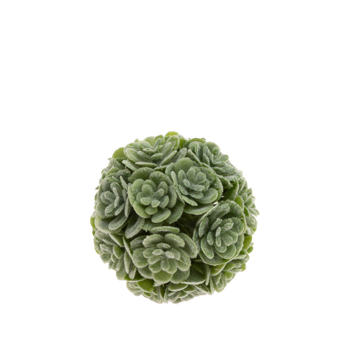Bring a touch of sculptural greenery to any nook with the Green Small Kissing Ball, a compact orb of lifelike rosette clusters crafted from durable PVC and plastic. Tuck it into bowls, trays, and shelves—or scatter multiples for effortless, maintenance-free texture throughout your decor. Approximate dimensions are 2.25 x 2.25 x 2.25 inches.