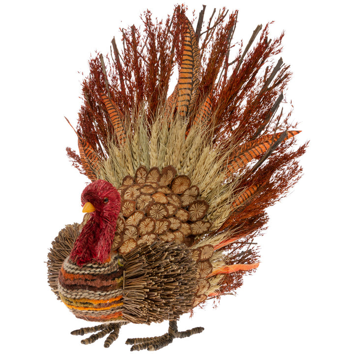 Make a bold, nature-inspired statement with the Lance Large Twig Feather Turkey, its sweeping tail and layered textures lending artisanal character to a mantel, console, or centerpiece. Crafted of durable MDF and metal with twig-like feather detailing, this mixed‑media bird delivers rustic charm and sculptural presence for standout everyday decor. Approximate dimensions are 13.78 x 13.39 x 14.96 inches.