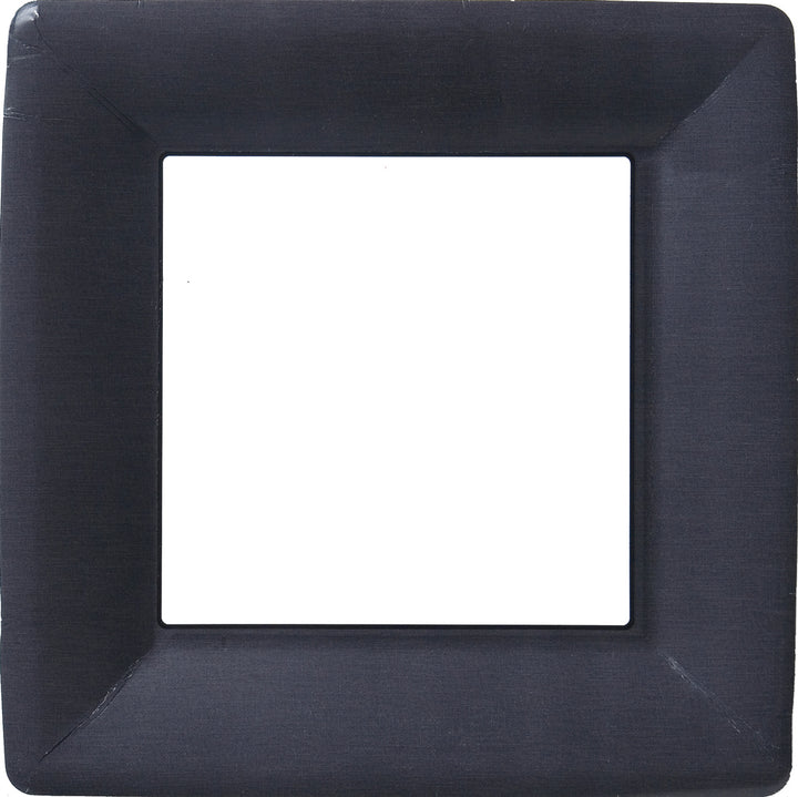 With a crisp square silhouette and a subtle linen texture in deep black, this paper dinner plate brings modern elegance to any setting. Sturdy yet disposable, it pairs upscale presentation with easy cleanup for parties, buffets, and everyday meals. Approximate dimensions are 10.25 x 1 x 10.25 inches.