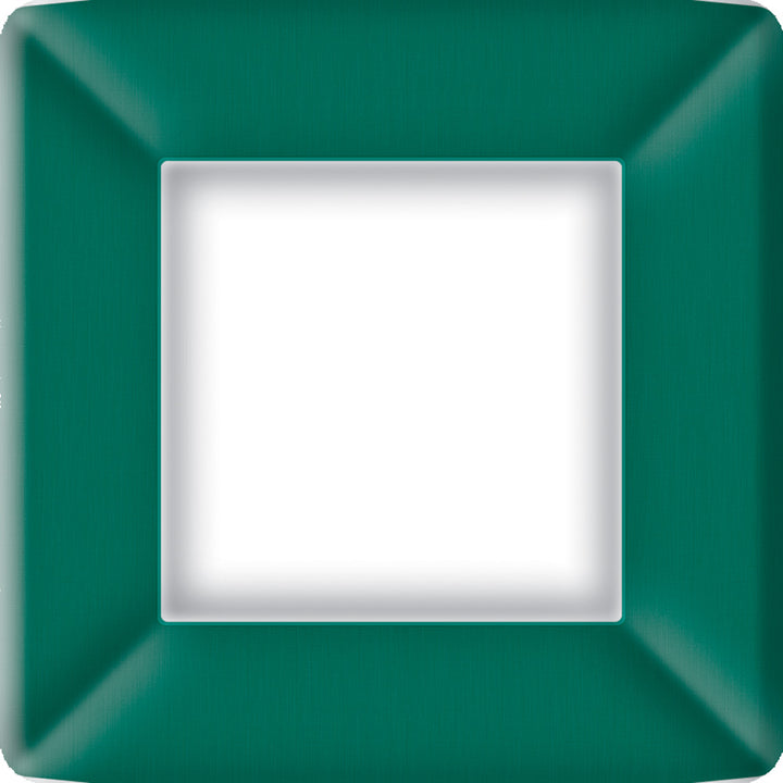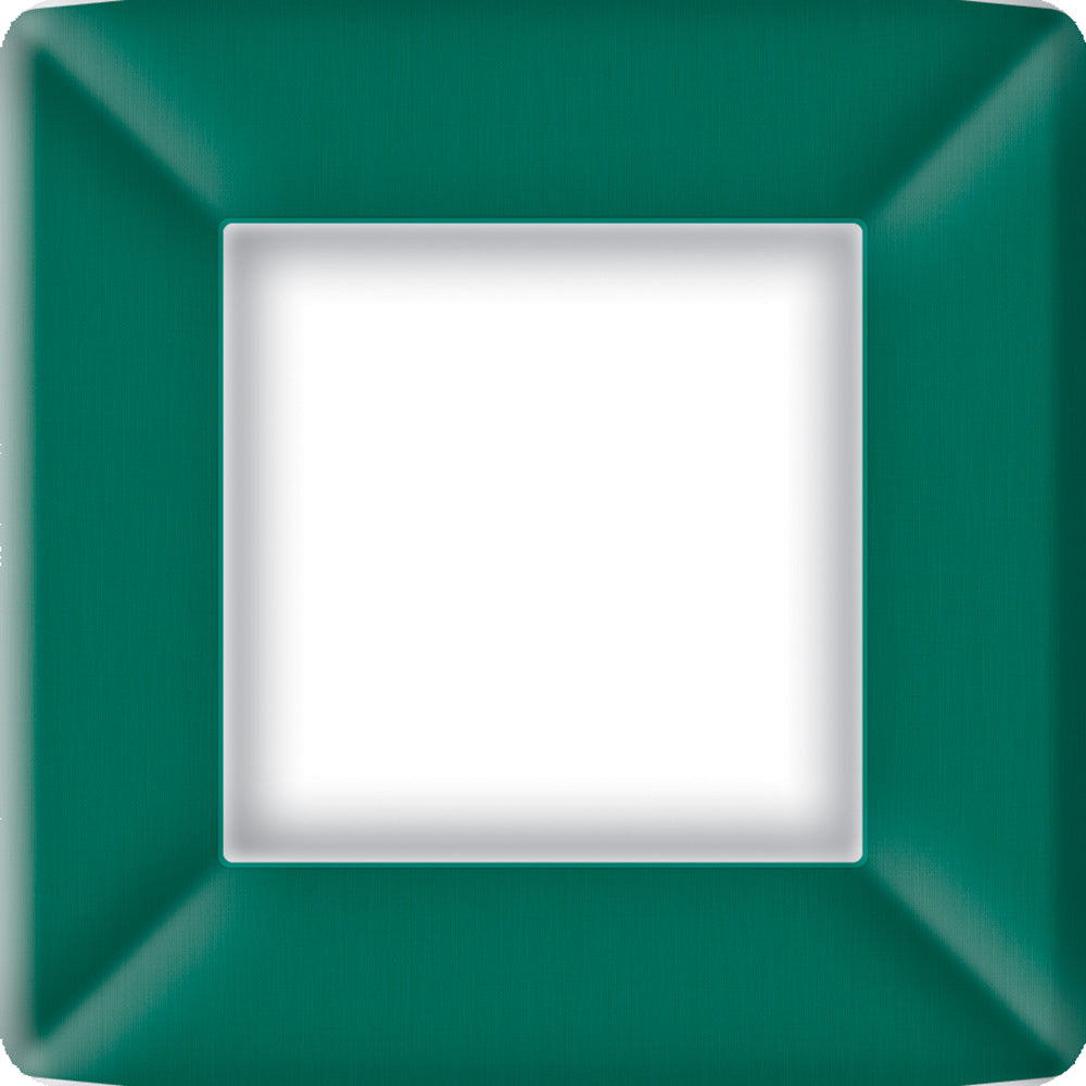 Elevate everyday dining with the Classic Linen Square Dinner Plate in Peacock, a jewel-toned paper design featuring a subtle linen-look border that frames every dish in crisp white. The modern square silhouette and sturdy paper construction handle generous portions with ease, delivering polished presentation with the convenience of quick cleanup and easy mix-and-match styling. Approximate dimensions are 10.25 x 1.25 x 10.25 inches.