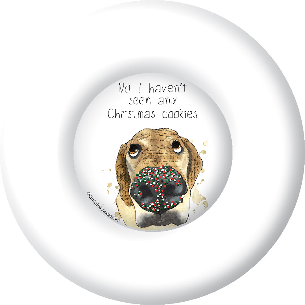Serve up sweets with a wink on this round paper dessert plate featuring a watercolor pup and a sprinkle-dusted nose that insists it hasn’t seen any cookies. Sturdy yet disposable, it’s a charming pick for pet-loving gatherings, bake sales, and everyday treat times. Approximate dimensions are 8 x 1 x 8 inches.