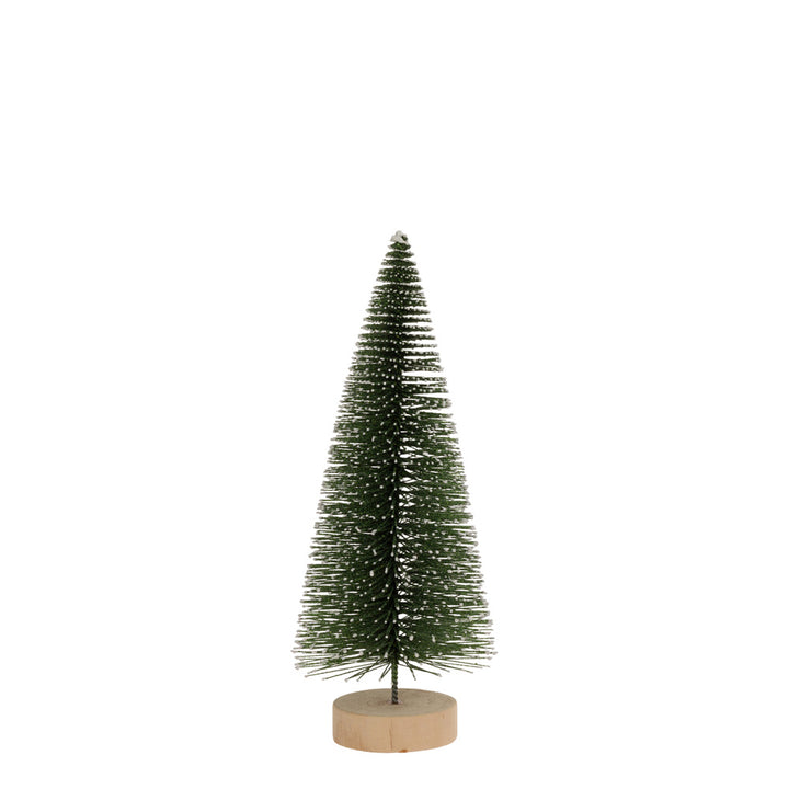 This small green and white bottle brush tree lends a crisp, modern woodland touch, with durable PVC bristles on an iron stem anchored by a smooth MDF base. Style it on a shelf, tray, or mantel to add height and texture to any vignette, or cluster several for an effortless evergreen look. Approximate dimensions are 4 x 4 x 9 inches.