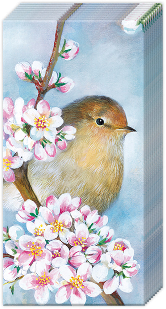 Harmony Pocket Tissue brings a gentle lift to daily routines with artwork of a serene songbird nestled amid painterly blossoms. Soft yet durable paper tissues slip neatly into pockets, purses, or backpacks, adding a nature-inspired touch wherever you go. Approximate dimensions are 2.25 x .75 x 4 inches. German printed on soft, 3-ply paper.