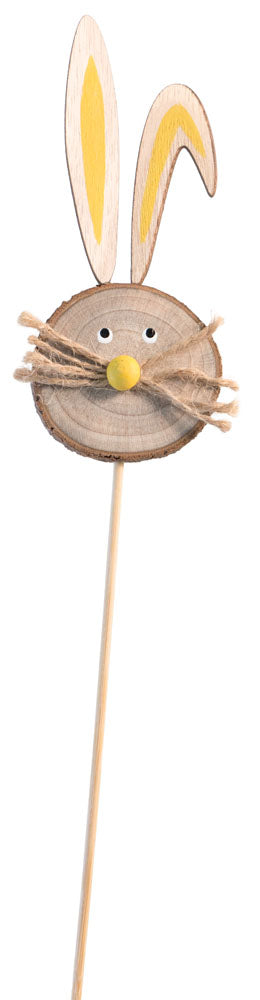 Crafted from plywood, this whimsical bunny face pick brings a pop of personality with painted yellow accents and sweet, dimensional whiskers. Tuck it into planters, wreaths, or table arrangements to add a playful Easter touch in an instant. Approximate dimensions are 2 x 2 x 17 inches.