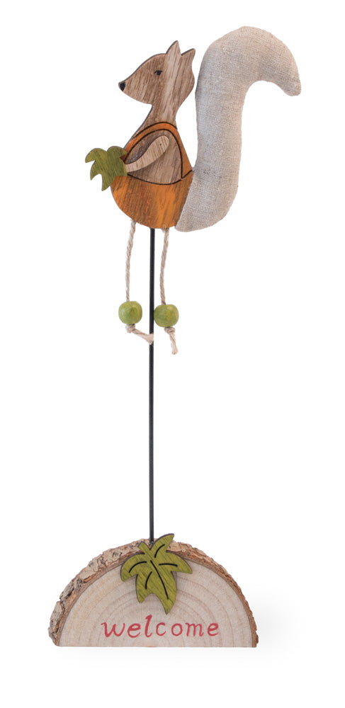 Bring playful woodland charm to your space with the Sal Pole Squirrel Orange, a metal figurine with ink-brushed details and a cheerful orange accent. Perched on a slim pole above a friendly “welcome” base, this whimsical squirrel delivers a lighthearted accent for shelves, planters, or tabletops. Approximate dimensions are 3 x 1 x 10 inches.