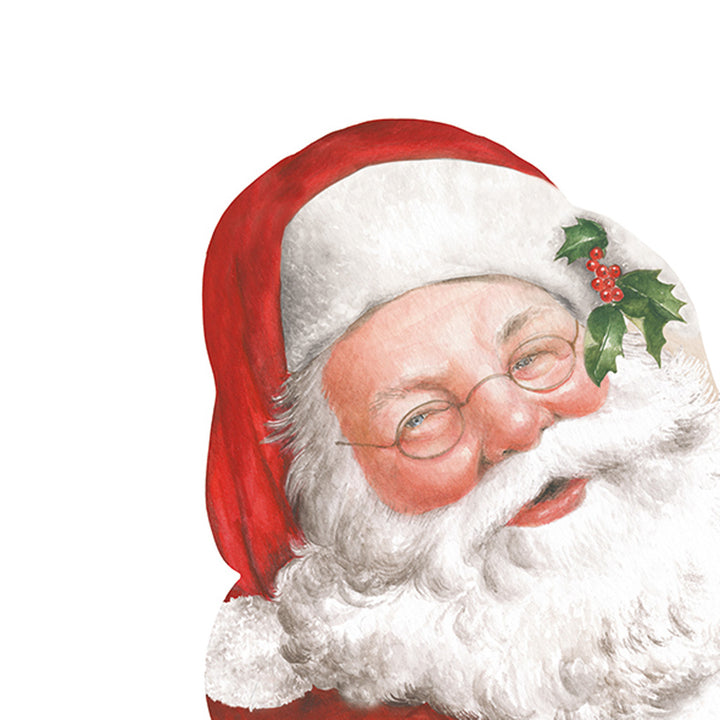 Shaped like a friendly Santa, these paper lunch napkins add instant cheer to place settings with a charming silhouette and rosy smile. Their convenient paper construction makes cleanup easy while delivering a playful, photo-ready accent that pairs effortlessly with solid tableware. Approximate dimensions are 6.5 x 6.5 x 1 inches. German printed on soft, 3-ply paper.
