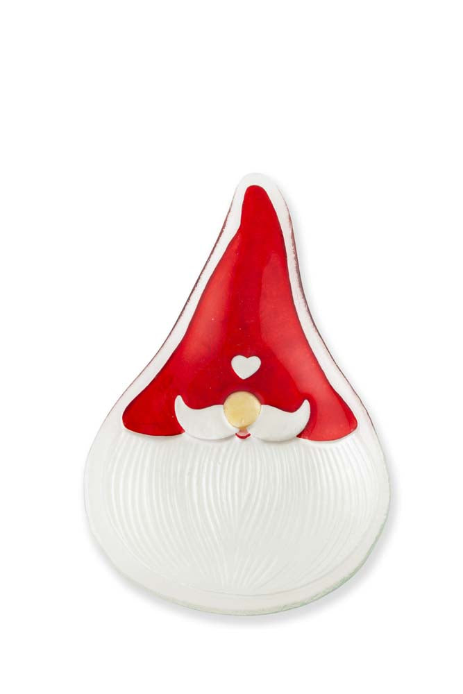 Whimsy meets utility in the Simon Small Gnome Glass Plate, crafted in gleaming glass with a sculpted beard texture, rosy nose, and a heart-topped cap. Perfect for presenting nibbles, sweets, or as a charming catchall, this playful serveware piece brings cheerful character to everyday tabletops. Approximate dimensions are 12 x 7.5 x 1 inches.