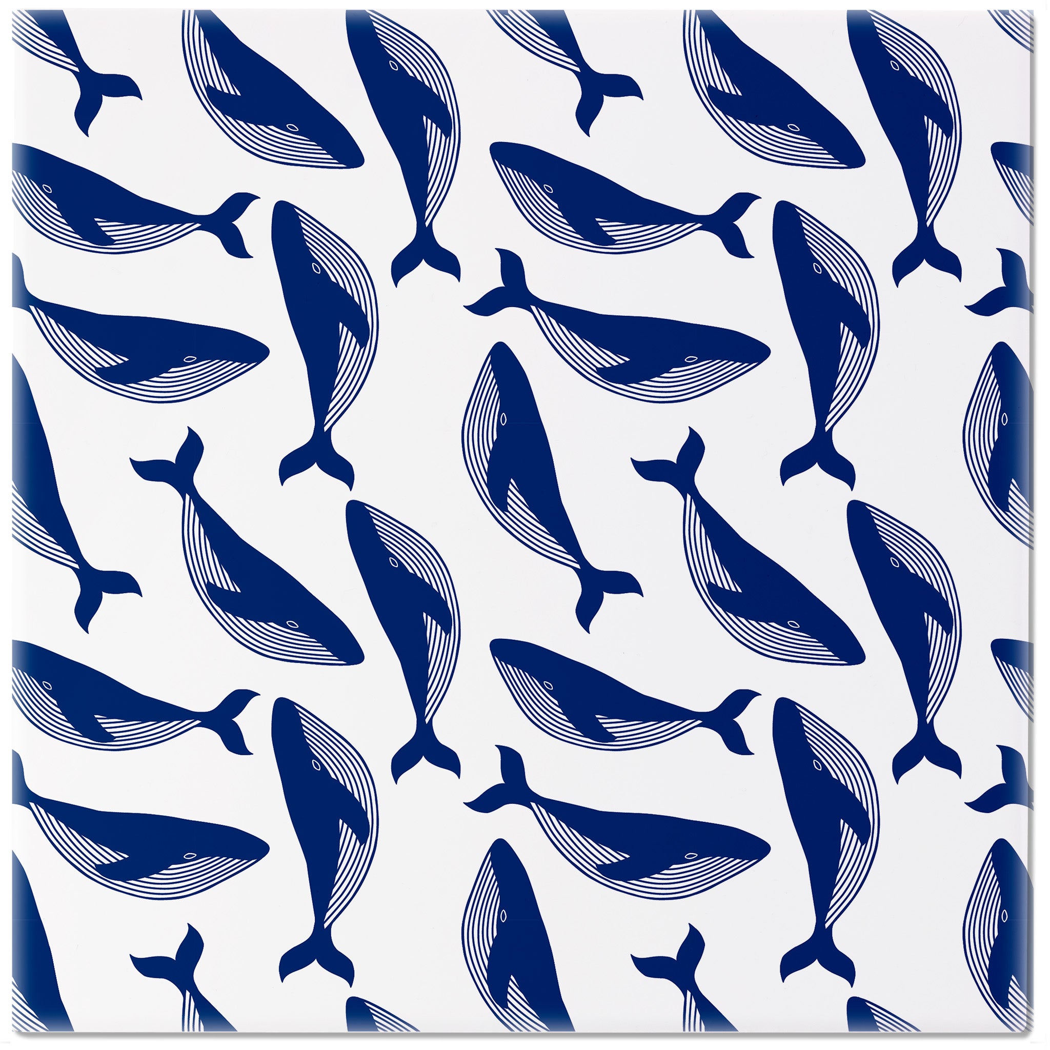 Make a splash at the table with the Navy Whale Trivet, crafted of durable ceramic and patterned with crisp navy whales for breezy coastal style. Sized for hot dishes and platters, this sturdy accent protects countertops and doubles as a playful art piece between meals. Approximate dimensions are 8 x 8 x .25 inches.