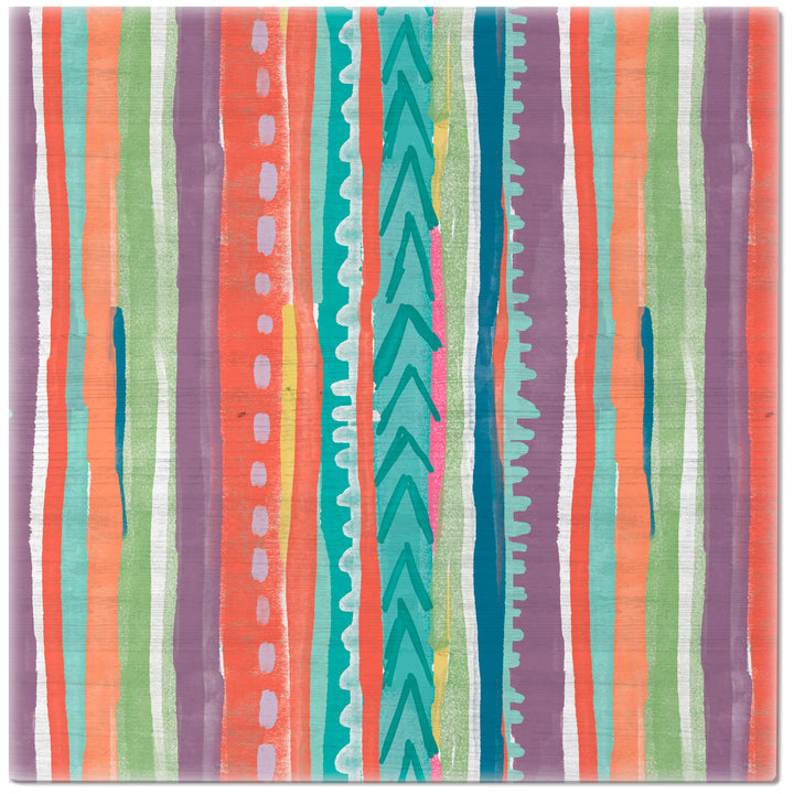 Painterly stripes in teal, coral, lilac, and mint give the Fiesta Trivet a playful, pattern-rich pop that instantly brightens any setting. Made of durable ceramic, it protects your table from hot dishes and doubles as a vibrant accent between meals. Approximate dimensions are 8 x 8 x .25 inches.