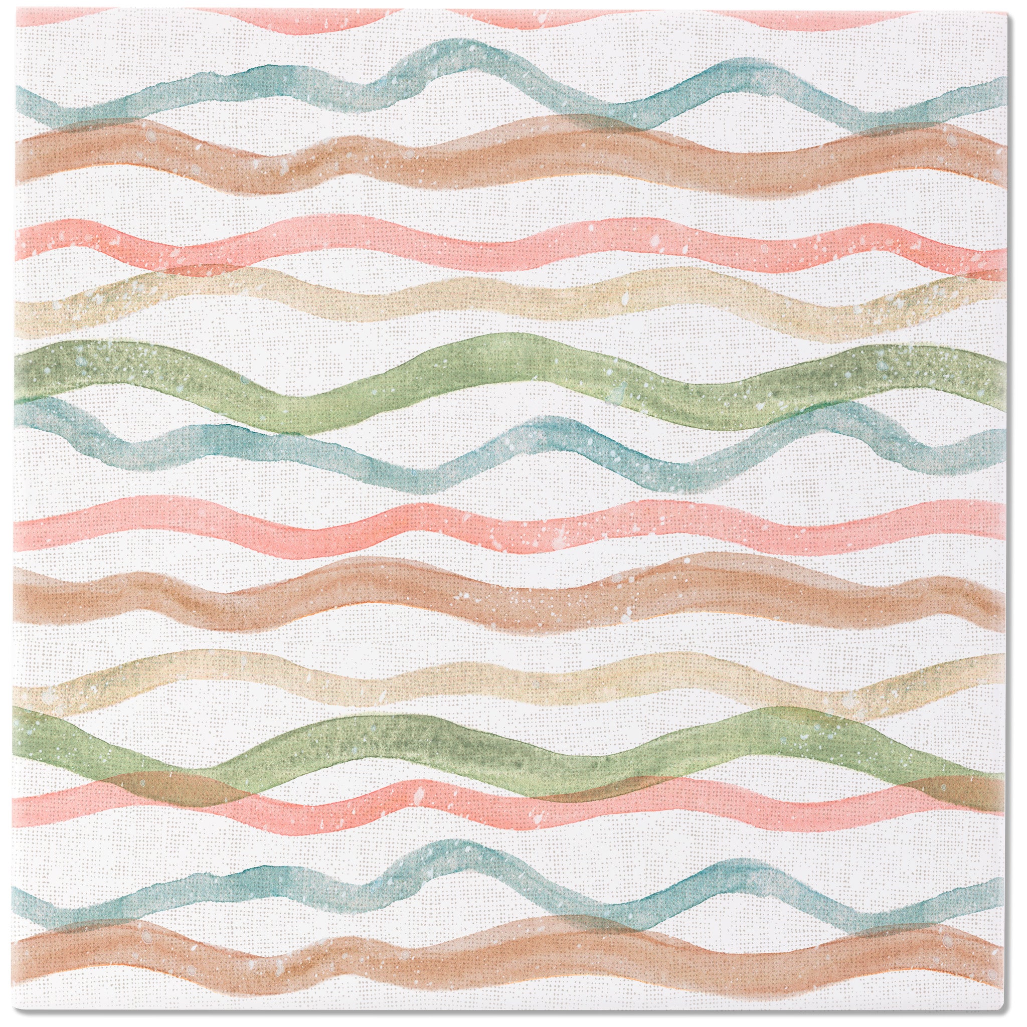 Painterly waves in coral, sage, sand, and sea-glass hues ripple across this ceramic trivet, bringing an artful pop of pattern to everyday tables. Heat-ready and easy to wipe clean, it protects surfaces from hot pots and serving dishes while doubling as a chic accent on countertops or buffets. Approximate dimensions are 8 x 8 x .25 inches.
