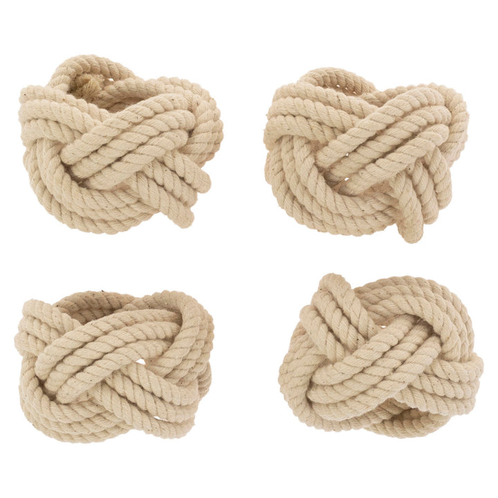 Crafted from natural cotton rope in a classic sailor’s knot, these napkin rings bring relaxed coastal texture and understated polish to the table. Their sturdy, rounded profile keeps linens neatly gathered while pairing effortlessly with everything from crisp whites to boldly patterned place settings. Approximate dimensions are 2 x 2 x 1.5 inches.