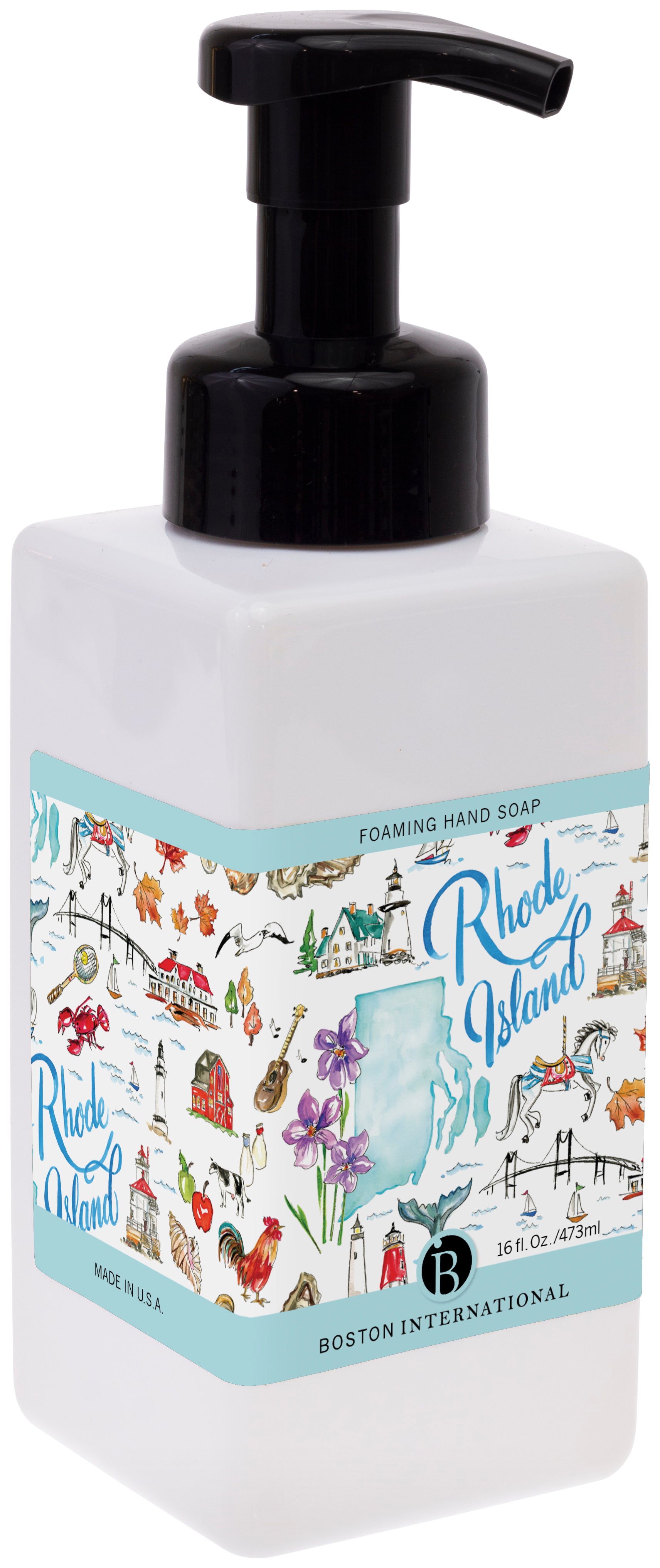 Celebrate the Ocean State at your sink with a rich, airy lather from this glycerin-based foaming hand soap, housed in a sturdy plastic pump bottle wrapped in charming Rhode Island illustrations. Made with distilled water for a clean rinse, it leaves hands feeling comfortably soft while adding a playful state-pride accent to kitchens, baths, and guest spaces. Approximate dimensions are 2.5 x 2.5 x 8 inches.