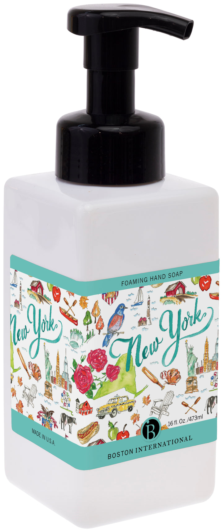 Celebrate the Empire State at your sink with New York State Foaming Hand Soap, a gentle glycerin-and-distilled-water formula that rises into a rich, airy lather. Housed in a durable plastic pump bottle decorated with charming state icons, it leaves hands feeling clean and refreshed while adding a bright, city-meets-country accent to kitchen or bath. Approximate dimensions are 2.5 x 2.5 x 8 inches.