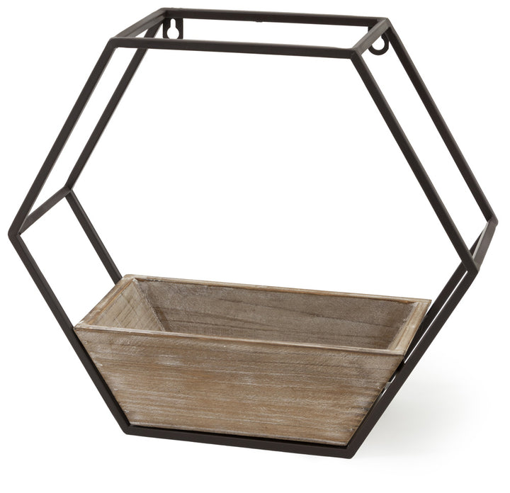 Striking and space-savvy, the Hexagon Wall Planter pairs a clean metal silhouette with a warm wood box to cradle succulents, herbs, or trailing greens. Easy to mount, this geometric accent adds depth and dimension to kitchens, entries, or home offices, turning blank walls into a simple vertical garden. Approximate dimensions are 13.5 x 4.5 x 11.75 inches.