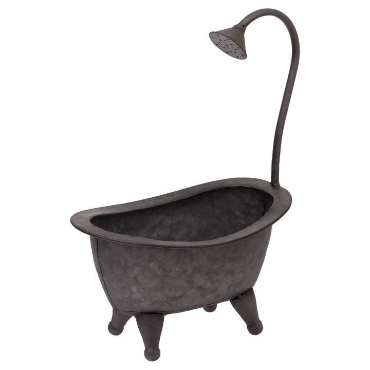 Whimsical and rustic, our Galvanized Footed Bathtub transforms a vintage tub silhouette—complete with arched shower head—into a charming metal accent. Its petite basin neatly corrals soaps, cotton rounds, or keys, bringing farmhouse-style storage to shelves, vanities, and countertops. Approximate dimensions are 10.75 x 7.25 x 15.5 inches.